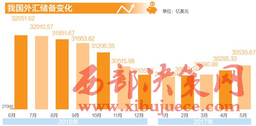 中國人民銀行最新公布的數(shù)據(jù)顯示,5月末,我國外匯儲備規(guī)模為30536億美元,較4月末小幅上升240億美元,增幅0.8%,連續(xù)第四個(gè)月出現(xiàn)回升。今年1月,外匯儲備跌破3萬億美元,此后開始連續(xù)回升。