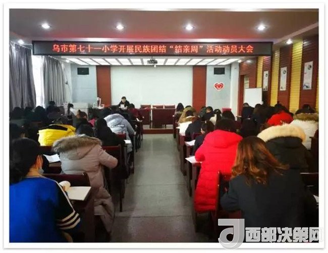 西部決策網-西部大開發(fā)訊(許鹍飛 通訊員 宋國平 李玉彤)為積極響應自治區(qū)民族團結“結親周”活動的號召,烏魯木齊市第七十一小學迅速行動,緊鑼密鼓進行周密安排部署。2017年12月11日上午10點,民族團結一家親“結親周”活動動員大會在學校五樓會議室召開。黨支部書記兼校長韓莉同志給全體在職人員傳達相關會議精神,宣讀學校民族團結一家親“結親周”活動實施方案。并對本次活動做了全面的安排部署,讓黨員干部盡快趕到親戚家中,同吃同住同勞動同學習,深入宣講黨的十九大精神,加強各族干部群眾交往交流交融,為實現新疆社會穩(wěn)定和長治久安凝心聚力。
