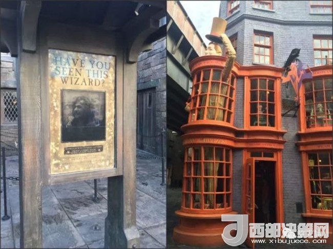 環(huán)球影城的員工說(shuō),霍格莫德村的時(shí)間點(diǎn)定在《哈利波特與阿茲卡班的囚徒》發(fā)生時(shí),所以鄧布利多還活著,慈祥地注視著我們這些麻瓜。三把掃帚門(mén)口還掛著小天狼星的通緝令,巴克比克還安然地在海格的小屋旁休憩,三人組都保持著三年級(jí)時(shí)的形象在黑魔法防御課教室里和你說(shuō)話(huà),那感覺(jué)就像一場(chǎng)時(shí)間和空間的雙重旅行。順便一提對(duì)角巷的時(shí)間點(diǎn)是第七本書(shū),所以古靈閣上趴了一只噴火的龍,翻倒巷里有貝拉特里克絲的通緝令,弗雷德和喬治開(kāi)了韋斯萊魔法笑料店,搭乘霍格沃茨特快穿梭在不同時(shí)間點(diǎn)的兩處對(duì)比來(lái)看,感覺(jué)十分有趣。