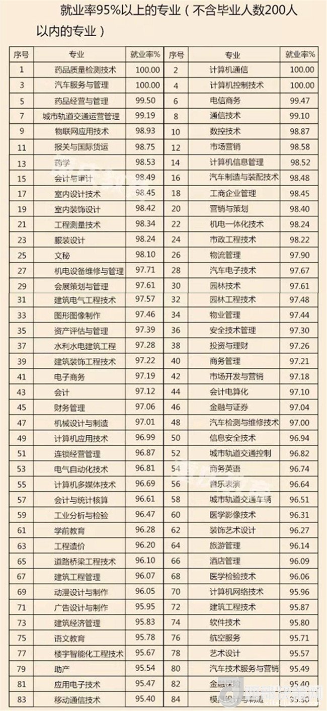??疲焊鲗I(yè)大類畢業(yè)生就業(yè)率均在92.00%以上 4個(gè)專業(yè)就業(yè)率達(dá)100%