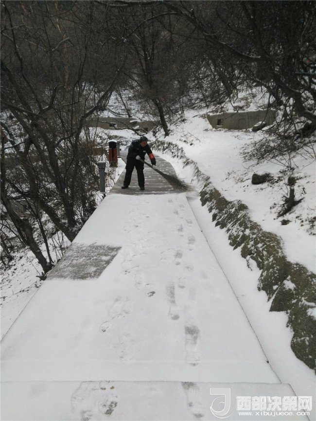 集團(tuán)重點(diǎn)組織清掃了游客中心、進(jìn)山公路及主峰區(qū)道路路面積雪,但由于氣溫驟降,路面結(jié)冰現(xiàn)象嚴(yán)重,員工們頂著刺骨的寒風(fēng),揮著鐵鍬、刮雪板、掃帚等工具清掃厚厚的積雪和冰塊,有效確保了主峰區(qū)路面的貫通。