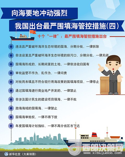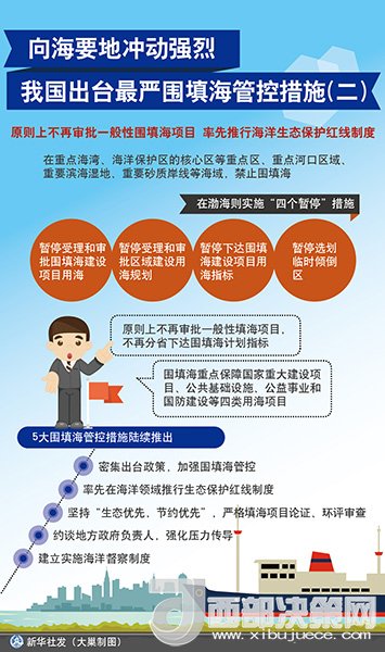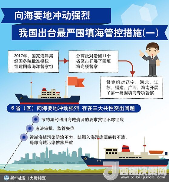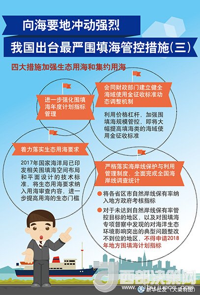 ?。保啡眨瑖液Q缶峙e行圍填海情況新聞發(fā)布會(huì),國家海洋局副局長林山青宣布,結(jié)合圍填海督察整改工作,國家海洋局將采取“史上最嚴(yán)圍填海管控措施”,以期保護(hù)優(yōu)先、集約利用的用海理念牢固確立,使海域開發(fā)利用得到可持續(xù)發(fā)展。