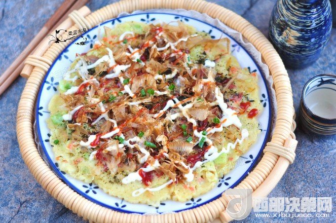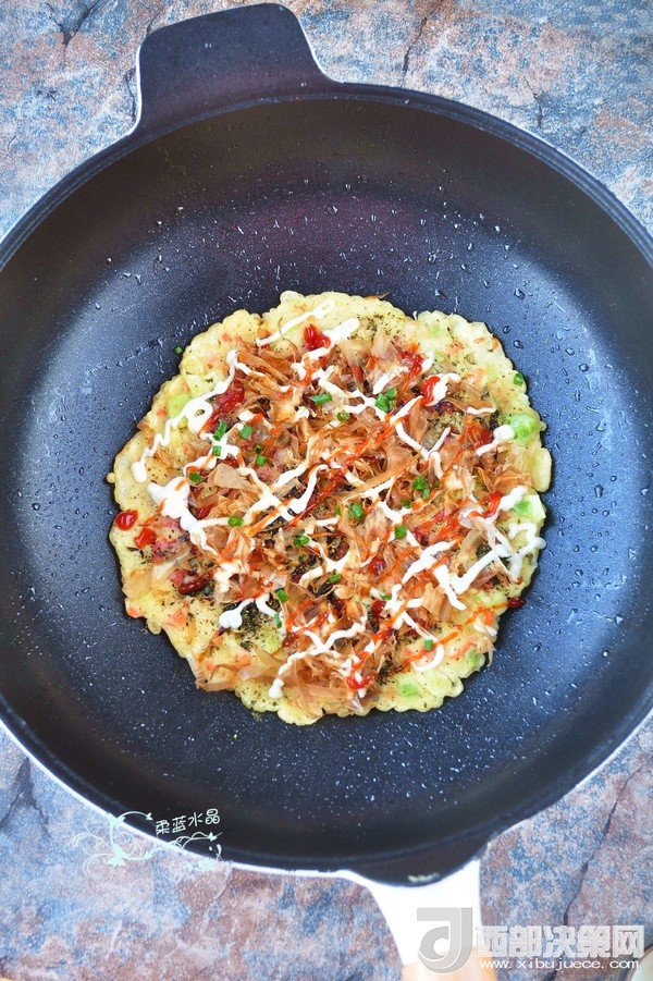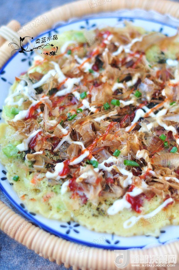 “大阪燒是一種日式蔬菜煎餅,有些地區(qū)根據(jù)日文漢字的寫法,也叫做“御好燒”,為日本關(guān)西的一種民間美食,也是大阪飲食文化的代表。由于外觀的關(guān)系,也有人稱大阪燒為“日本式比薩餅”,可以說放上去的食材,并沒有特殊規(guī)定,一般是自己想吃什么就放什么。吃膩了中式的雞蛋薄餅,換個(gè)口味也別俱一格。做這個(gè)頂重要的是,一定要用不粘鍋,不然想翻面的時(shí)候,底部巴鍋底不動(dòng),而且還容易上面的沒熟,下面的已經(jīng)糊了。”
