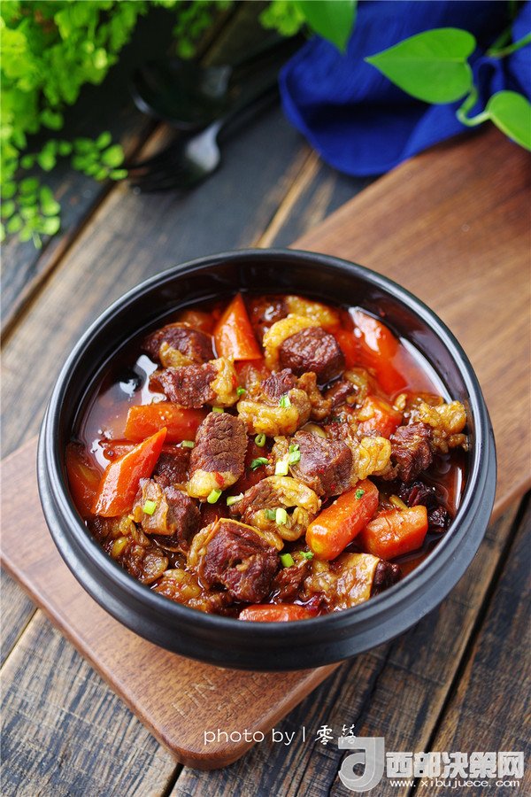 13.香噴噴的【胡蘿卜燒牛腩】出鍋嘍,可撒些蔥絲點(diǎn)綴!