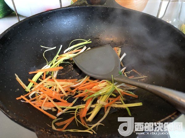 15.把炸好的肉片倒入,快速炒勻,可以撒點(diǎn)香菜葉,我家女兒不吃香菜
