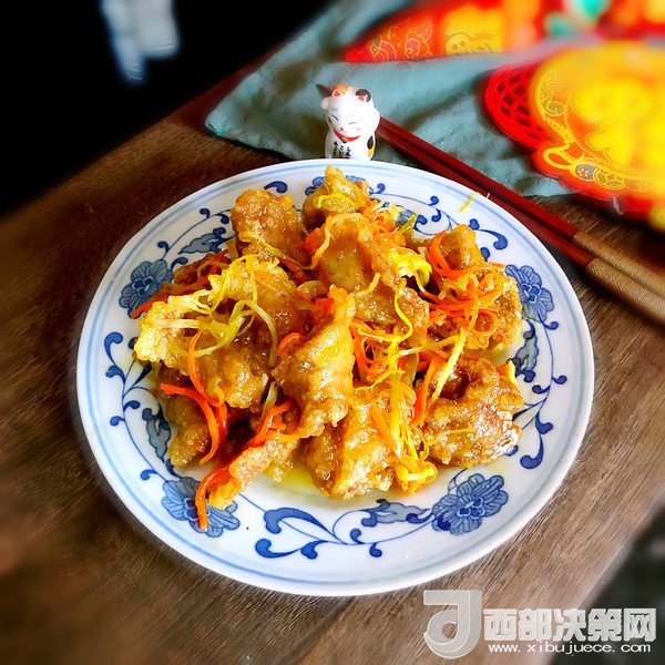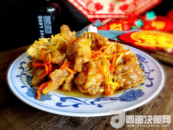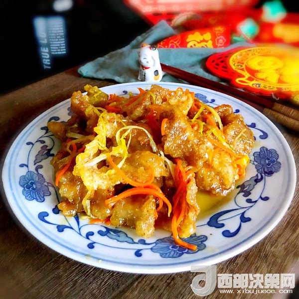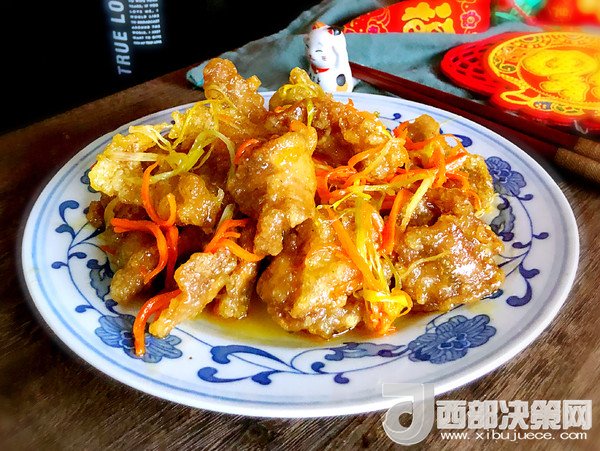鍋包肉是一道東北風(fēng)味菜,滿(mǎn)族美食。 就是將豬里脊肉切片腌入味,裹上炸漿下鍋炸至金黃色撈起,再下鍋拌炒勾芡即成。成菜色澤金黃,口味酸甜。從小到大,我家女兒對(duì)酸甜味的菜肴那是情有獨(dú)鐘!