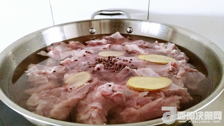 3.鍋中放入清水,排骨,花椒粒,姜片適量進(jìn)行焯水。
