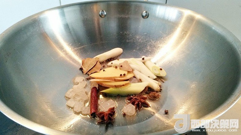 輔料:花椒粒 適量 草果 兩個(gè) 玉米油 半勺 八角 兩個(gè) 生姜 一塊 大蔥 一根 生抽 一勺 老抽 幾滴 蠔油 1湯勺 鹽 三克 冰糖 20克