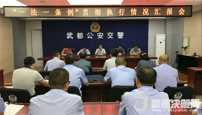西部決策網(wǎng)——西部大開發(fā)訊 (帥華鋒 通訊員 馬存福 郭文靜) 5月25日,甘肅隴南市武都區(qū)人大常委會執(zhí)法檢查組帶領(lǐng)交通局、運管局、綜合執(zhí)法局、安監(jiān)局等部門負責(zé)人,深入武都區(qū)公安局交警大隊督導(dǎo)檢查《中華人民共和國道路交通安全法》和《甘肅省道路交通安全條例》(以下簡稱“一法一條例”)貫徹實施情況,大隊班子成員陪同檢查。