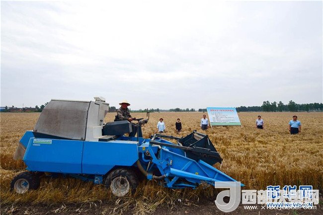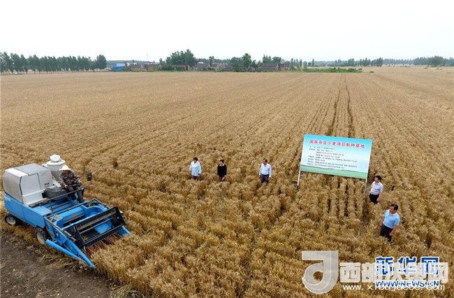 當(dāng)日,在河南省鄧州市腰店鎮(zhèn)國家雜交小麥項(xiàng)目制種基地,專家組對小麥進(jìn)行田間隨機(jī)多點(diǎn)取樣調(diào)查,收割機(jī)對小麥進(jìn)行實(shí)打?qū)嵤铡y產(chǎn)數(shù)據(jù)表明,雜交小麥種子生產(chǎn)在豐產(chǎn)性、抗逆性、抗病性、適應(yīng)性等方面表現(xiàn)優(yōu)異,標(biāo)志著我國雜交小麥研發(fā)進(jìn)入大田應(yīng)用和產(chǎn)業(yè)化階段。新華社記者 馮大鵬 攝