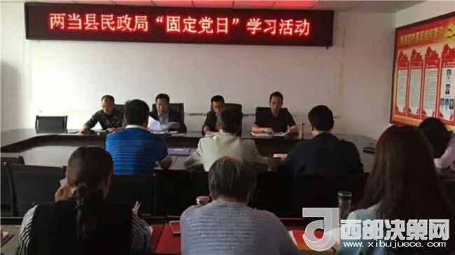 西部決策網(wǎng)——西部大開發(fā)訊 (帥華鋒 通訊員 馬存福 趙雪瓊)5月29日上午,甘肅兩當縣民政局在三樓會議室開展“固定黨日”學習活動,全體黨員職工參加。民政局長、黨支部書記田春參加并主持學習活動。