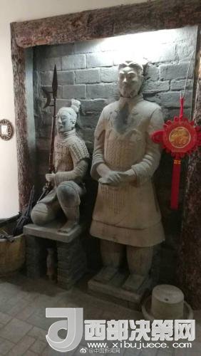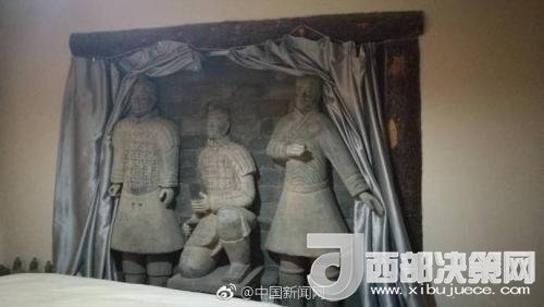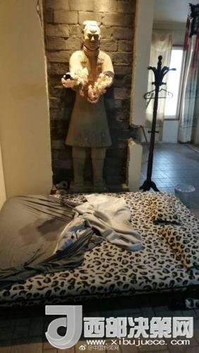 他告訴記者,“房子并不是我們裝修的,是原來房東做的”。“他是一個(gè)老西安人。從2008年就買下這處房子,因?yàn)樗浅O矚g兵馬俑,就在裝修中加了很多兵馬俑元素進(jìn)去。”