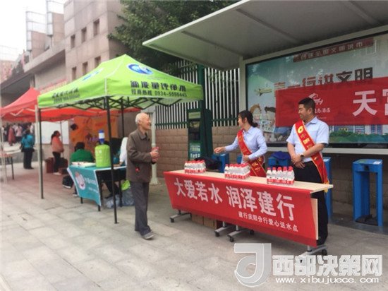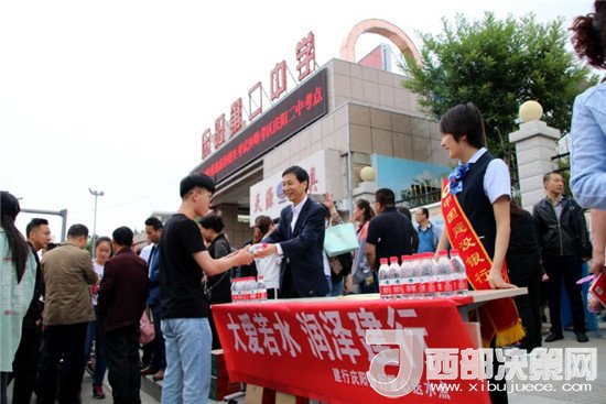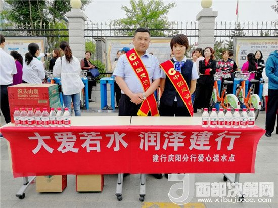 西部決策網(wǎng)——西部大開(kāi)發(fā)訊(帥華鋒  通訊員 齊彩云 嵇祥)6月7日,建行慶陽(yáng)分行組織員工,在這個(gè)特別的日子開(kāi)展了“大愛(ài)若水,潤(rùn)澤建行”助力高考學(xué)子活動(dòng),在高考期間,考生及家長(zhǎng)可在我行設(shè)立的補(bǔ)水站處憑準(zhǔn)考證領(lǐng)取1瓶礦泉水,為寒窗苦讀的學(xué)子與焦急等待的家長(zhǎng)送去了關(guān)懷。