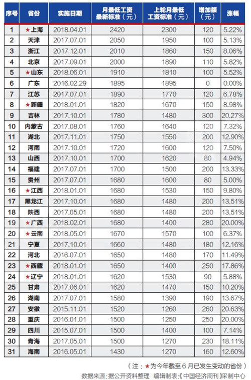 2018年你所在的省份最低工資標(biāo)準(zhǔn)調(diào)整了嗎?