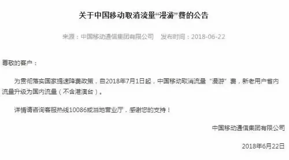 6月22日,中國移動、中國聯(lián)通和中國電信先后宣布自7月1日起取消流量“漫游”費,手機用戶省內(nèi)流量升級為國內(nèi)流量(不含港澳臺)。