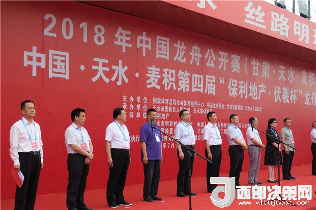 9時整,2018中國龍舟公開賽(天水麥積站)暨保利地產(chǎn)“伏羲杯”第四季龍舟大賽正式拉開序幕,來自全國及甘肅省的近25家代表隊展開激烈角逐。中國龍舟協(xié)會副主席劉北劍,天水市人大常委會主任、市委秘書長蔣曉強(qiáng),天水市人大常委會原主任、市關(guān)工委主任李世榮,市委常委、常務(wù)副市長趙四輩,市委常委、宣傳部部長張建杰,市人大常委會副主任張克強(qiáng),副市長、市公安局局長馬瑛,市政協(xié)副主席屈光平,市政協(xié)副主席、麥積區(qū)委書記張智明,國家體育總局社會體育指導(dǎo)中心二部主任、國際龍舟協(xié)會副秘書長、亞洲和中國龍舟協(xié)會秘書長余漢橋,省體育局群眾體育處處長武志峰,市人大常委會秘書長楊坤,市政府副秘書長、外事僑務(wù)辦主任張有信,麥積區(qū)人大常委會主任賈應(yīng)珍等出席開幕式,并為龍舟點(diǎn)睛。