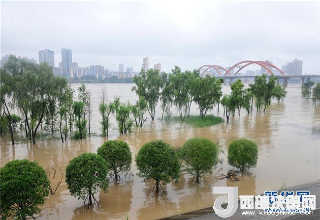 7月3日,在四川省南充市,嘉陵江南充主城區(qū)段洪峰過境,沿岸大量綠地被淹。 新華社發(fā)(樂校臣 攝)