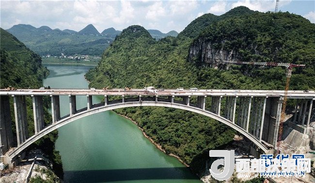 貴州織普高速公路控制性工程——夜郎湖特大橋日前實(shí)現(xiàn)全線貫通,預(yù)計(jì)本月底可全面建成。該橋由貴州橋梁建設(shè)集團(tuán)于2016年5月開始施工,全長(zhǎng)391.4米,拱圈凈跨徑210米。據(jù)了解,織普高速全長(zhǎng)約52公里,建成后由織金縣到普定縣的車程可從原來(lái)的2.5小時(shí)縮短到35分鐘,將大幅提高通行效率,進(jìn)一步推動(dòng)沿線經(jīng)濟(jì)發(fā)展。新華社記者 陶亮 攝
