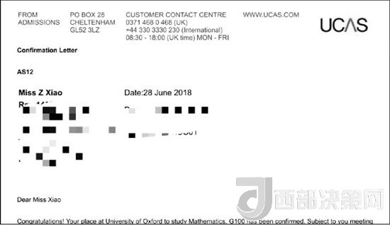 牛津大學錄取通知書。