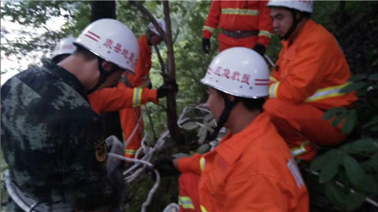 在確認現(xiàn)場再無落石隱患后,大隊及專職隊官兵收檢器材歸隊。