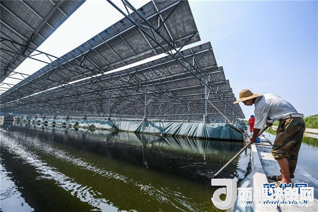 該項(xiàng)目建設(shè)在1800畝魚塘上,形成了板上發(fā)電、板下養(yǎng)魚的獨(dú)特景觀,項(xiàng)目裝機(jī)容量60兆瓦,所發(fā)電量全部并入電網(wǎng)。 近年來(lái),浙江省湖州市大力實(shí)施能源項(xiàng)目,以太陽(yáng)能、水能、風(fēng)能等清潔能源替代化石能源,因地制宜實(shí)施農(nóng)光互補(bǔ)、漁光互補(bǔ)、林光互補(bǔ),不僅形成了一條集光伏發(fā)電、農(nóng)業(yè)種植、漁業(yè)養(yǎng)殖、林業(yè)休閑、旅游觀光于一體的生態(tài)旅游農(nóng)業(yè)光伏產(chǎn)業(yè)鏈,更有效推動(dòng)了能源結(jié)構(gòu)的持續(xù)優(yōu)化,為湖州生態(tài)文明建設(shè)注入綠色動(dòng)能。截至2018年6月底,湖州市新能源發(fā)電裝機(jī)達(dá)到145萬(wàn)千瓦,比2017年同期增長(zhǎng)40%;2018年上半年累計(jì)新能源發(fā)電量8.59億千瓦時(shí),同比增長(zhǎng)51%,相當(dāng)于減少煤炭使用量約34.7萬(wàn)噸,減少二氧化碳排放約85.64萬(wàn)噸。新華社記者 徐昱 攝