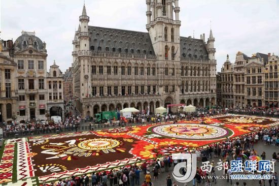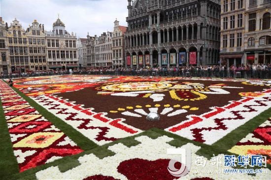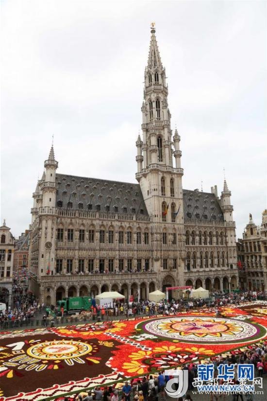 8月16日,由50多萬朵秋海棠鋪就的鮮花地毯亮相比利時(shí)布魯塞爾大廣場(chǎng)。 新華社記者王曉郡攝