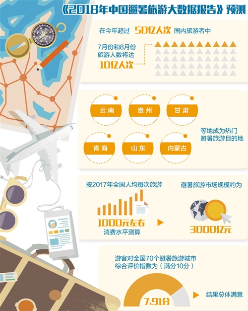 據(jù)中國(guó)旅游研究院等單位發(fā)布的《2018年中國(guó)避暑旅游大數(shù)據(jù)報(bào)告》(下稱《報(bào)告》)預(yù)測(cè),在今年超過(guò)50億人次國(guó)內(nèi)旅游者中,7月份和8月份旅游人數(shù)將達(dá)10億人次,占全年游客數(shù)量的五分之一。其中,避暑旅游規(guī)模預(yù)計(jì)占一半,約5億人次。《報(bào)告》稱,這一數(shù)字將使中國(guó)成為全球最大的避暑旅游市場(chǎng)。