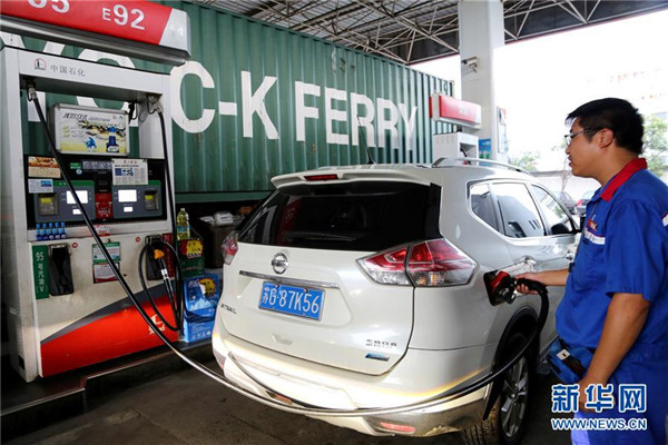 9月3日,江蘇省連云港市一家加油站的工作人員給車輛加油。 當(dāng)日,國家發(fā)展改革委發(fā)布消息,按照現(xiàn)行成品油價格形成機制,自2018年9月3日24時起,國內(nèi)汽油、柴油價格每噸分別上調(diào)180元和170元。 新華社發(fā)(王春 攝)