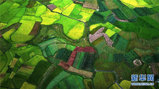 廣西隆林各族自治縣克長鄉(xiāng)田園景色(9月1日無人機拍攝)。 新華社記者張愛林攝