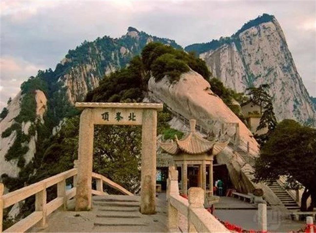 北峰海拔1614米,為華山主峰之一,因位置居北得名。北峰四面懸絕,上冠景云,下通地脈,巍然獨(dú)秀,有若云臺(tái),因此又名云臺(tái)峰。唐李白《西岳云臺(tái)歌送丹丘子》詩(shī)曾寫(xiě)到:“三峰卻立如欲摧,翠崖丹谷高掌。白帝金精運(yùn)元?dú)?,石作蓮花云作臺(tái)。”