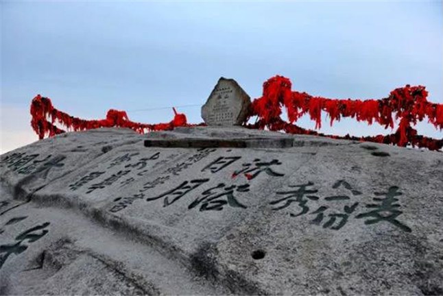 西峰海拔2082.6米,華山主峰之一,因位置居西得名。又因峰巔有巨石形狀好似蓮花瓣,古代文人多稱其為蓮花峰、芙蓉峰。袁宏道在他的《華山》中記述:“石葉上覆而橫裂”;徐霞客《游太華山日記》中也記述:“峰上石聳起,有石片覆其上,如荷花。”李白詩(shī)中有“石作蓮花云作臺(tái)”句,也當(dāng)指此石。