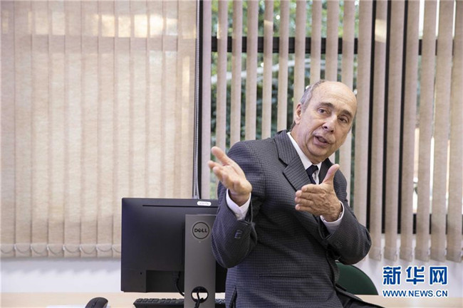 8月30日,在巴西圣若澤杜斯坎普斯,中國-巴西空間天氣聯(lián)合實驗室巴方運營負責(zé)人若阿金·科斯塔在介紹實驗室運轉(zhuǎn)情況?!⌒氯A社記者 李明 攝