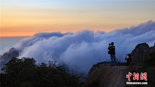 9月17日,秋雨洗禮后的安徽黃山風(fēng)景區(qū)霧氣繚繞,秋風(fēng)清爽。遠(yuǎn)處千峰疊嶂,互相競秀,千谷萬壑,云煙升騰。陣陣秋風(fēng),吹拂著云霧淡淡濃濃,天都峰、蓮花峰及西海群峰藏在其間,若隱若現(xiàn),幻若仙境。 葉永清 攝