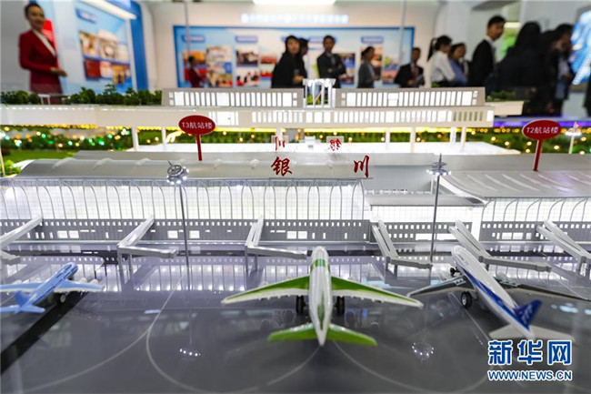 9月19日,觀眾在參觀展覽上展出的銀川河東國際機場綜合交通樞紐模型。9月19日,寧夏回族自治區(qū)成立60周年大型成就展在銀川國際會展中心開幕。記者沈伯韓攝