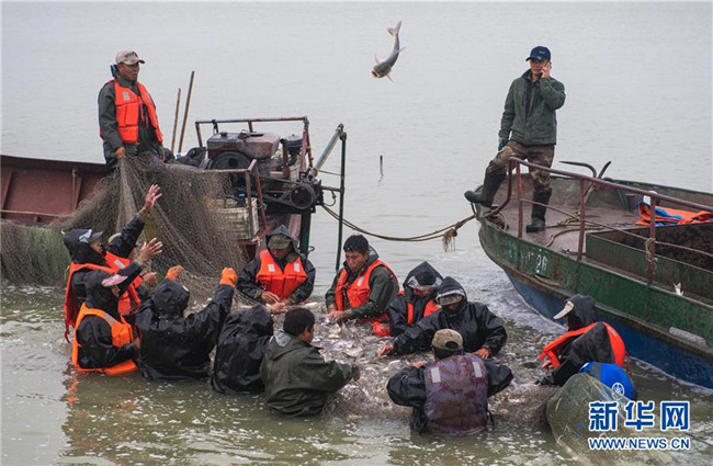 秋天的查干湖,天高云淡,煙波浩渺。26日下午,習(xí)近平乘船沿途察看查干湖南湖生態(tài)環(huán)境。不遠(yuǎn)處,數(shù)十名漁場(chǎng)職工正在拉網(wǎng)捕魚(yú),水花聲、號(hào)子聲此起彼伏。習(xí)近平登上浮橋,熱火朝天的畫(huà)面躍入眼簾:粼粼波光,網(wǎng)收魚(yú)躍。