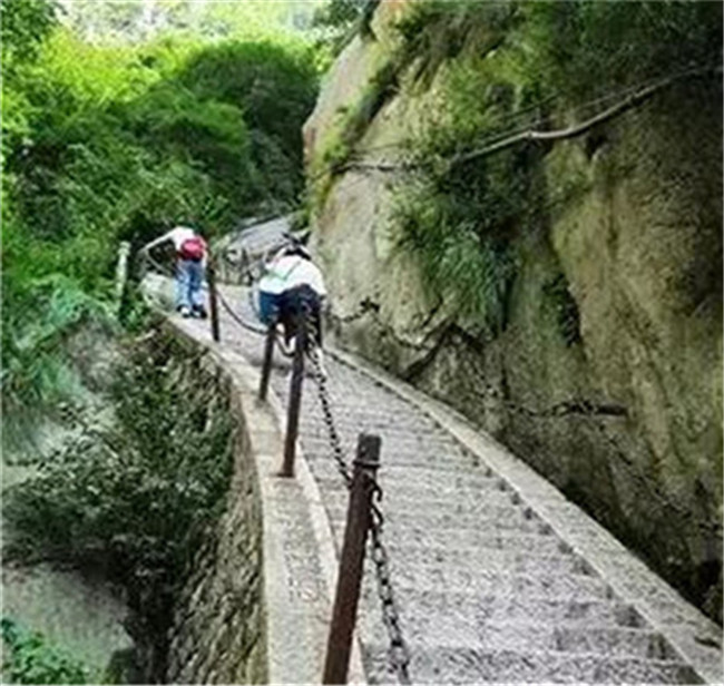 進石坊為竹園,上達(dá)山門,門內(nèi)有龍井,其水澄澈甘甜。古時井畔有廟宇三間,供太上老君,現(xiàn)已廢棄年久。廟四周有紫微洞、三元洞、斗姥洞、開山洞、金天洞、祖師洞等十余處,以紫微洞面積最大,稱華山第一洞。坪上北峰巔有巨石,石頂平坦,人稱拜斗臺,相傳是毛女玉姜和清時道士王常月等朝拜北斗的地方。東崖有巨石,形如臥虎,人稱臥虎石。
