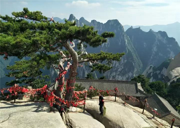 走過傳說中的華岳仙掌,路過引鳳亭,登上最高的華山南峰頂,看歸雁南飛。走過燦若蓮花的西峰,看落日余輝映紅天際。