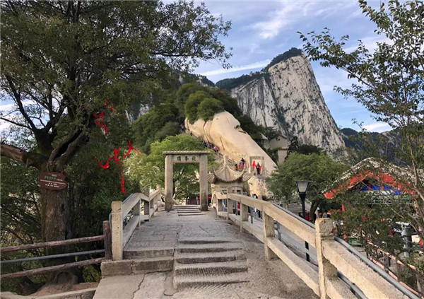 站在老君犁溝的盡頭,看著緩緩攀登的游人。站在華山的石階上,迎著涼涼的秋風。輕踩著一級又一級的臺階,走在狹窄悠長的山道上,偶遇最美好的秋日。