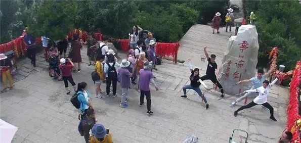 站在北峰頂?shù)臋跅U旁,看著飄渺的云海,猶如仙境。路過華山論劍平臺,期待你手舞足蹈揮劍的瀟灑。期待你揮劍拍照的欣喜的模樣。