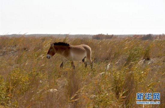 這是10月16日在敦煌西湖國家級(jí)自然保護(hù)區(qū)拍攝的普氏野馬。 新華社記者 胡偉杰 攝