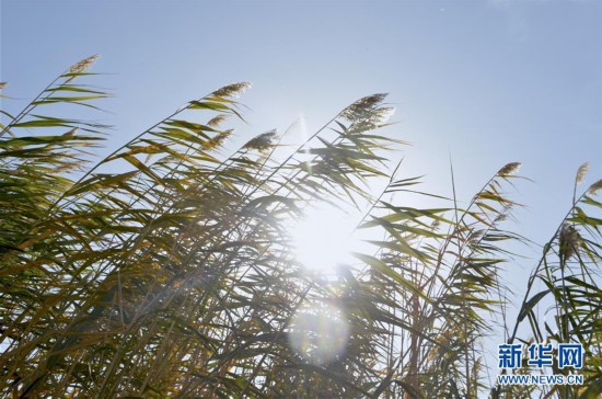 這是10月16日在敦煌西湖國家級(jí)自然保護(hù)區(qū)拍攝的蘆葦。 新華社記者 李笑 攝