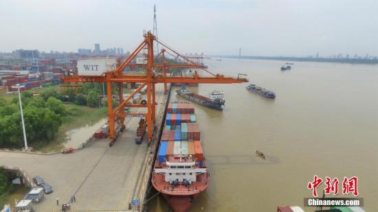 陽邏武漢新港位于武漢天興洲以東70公里的長江岸線上,是中國最大內(nèi)河航運港口。中新社記者 鄭子顏 攝