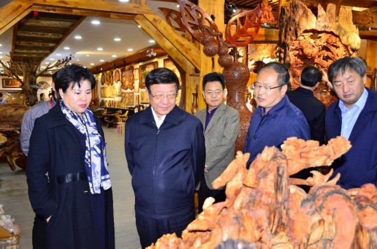 張建龍首先來到烏馬河木藝文化小鎮(zhèn),詳細(xì)了解小鎮(zhèn)規(guī)劃布局和建設(shè)發(fā)展情況,通過觀看小鎮(zhèn)宣傳片,現(xiàn)場參觀小鎮(zhèn)服務(wù)中心、木藝產(chǎn)品店,對伊春市木藝文化產(chǎn)業(yè)發(fā)展表示高度肯定。他指出要繼續(xù)突出原生態(tài)特色,加強(qiáng)創(chuàng)新創(chuàng)意設(shè)計,滿足人民群眾對林業(yè)產(chǎn)品多樣化的需求。走進(jìn)美江木藝公司,就如同走進(jìn)了藝術(shù)的殿堂,制作精良的木拼畫、惟妙惟肖的根雕、造型別致的樹榴工藝產(chǎn)品,一件件精美的木制工藝品,令人目不暇接。張建龍仔細(xì)觀賞這些木制產(chǎn)品,向企業(yè)負(fù)責(zé)同志詳細(xì)了解產(chǎn)品創(chuàng)意設(shè)計和市場銷售等情況。勉勵企業(yè)要再接再厲,繼續(xù)做好產(chǎn)品研發(fā),全面提升工藝水平,創(chuàng)造出更多更好的生態(tài)特色產(chǎn)品,進(jìn)一步增強(qiáng)林業(yè)發(fā)展的活力與動力。