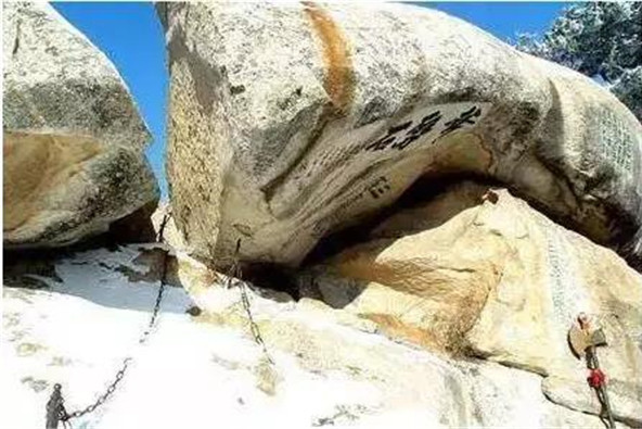 華山文化可謂博大精深,這些鐫刻在神山圣水之間的文字,他們是一個(gè)符號(hào),更是一份歷史的活化石。有時(shí)雖寥寥幾筆,卻是一個(gè)時(shí)代的銘記,“智取華山”雖然只有四個(gè)字,但是它卻讓后人牢牢記住了在這座山上曾經(jīng)發(fā)生的英雄故事。這四個(gè)字是劉吉堯2004年來的時(shí)候題的詞,劉吉堯是全國特級(jí)戰(zhàn)斗英雄,他在近90歲時(shí)還經(jīng)常華山,這就是智取華山路離北峰最近的那一段路。