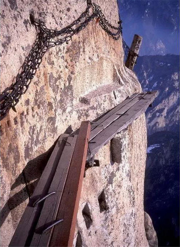 史學(xué)家考證:記載華山最早的書籍是《尚書·禹貢篇》,《史記·封禪書》載有黃帝、堯、舜巡游華山事。人們最早登臨華山主峰的記載見于《韓非子·外儲(chǔ)說(shuō)左上》。酈道元的《水經(jīng)注》顯示,今日登山路已現(xiàn)雛形,至唐代已開辟出從華山峪經(jīng)青柯坪、云臺(tái)峰登頂?shù)穆肪€,即“自古華山一條路”,距今已有一千多年了。