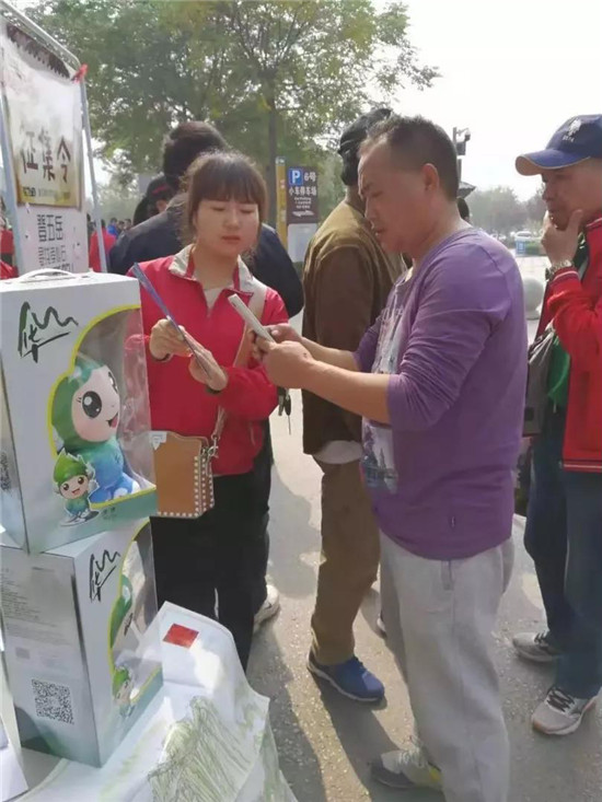 營銷中心工作人員耐心細(xì)致地幫助游客參與活動(dòng)