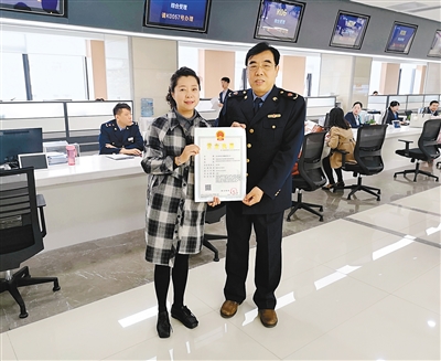 2018年全市新登記的第39萬戶市場(chǎng)主體獲頒營業(yè)執(zhí)照 記者梁璠 攝