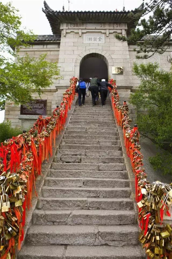 金鎖關(guān)北接五云峰,南控華山主峰,東西兩側(cè)壑深千丈,關(guān)前僅有一米完的臺(tái)階石徑。環(huán)周古松蒼翠,奇石林立,常有祥云環(huán)繞,風(fēng)光非常迤麗。“但有女兒初長成,便為三秦姣姣容。”說的就是奇險(xiǎn)天下第一山的華山除了以其奇、險(xiǎn)、秀而聞名遐邇之外,還別有一番令人動(dòng)容的金鎖關(guān)風(fēng)景:關(guān)內(nèi)、關(guān)外登山路兩側(cè)的鐵索上,情侶鎖、平安鎖,重重疊疊,紅繩彩線迎風(fēng)搖曳,筑成一道美麗的愛情風(fēng)景線,鎖住對(duì)愛情的誓言,表達(dá)堅(jiān)如磐石的愛情忠貞!