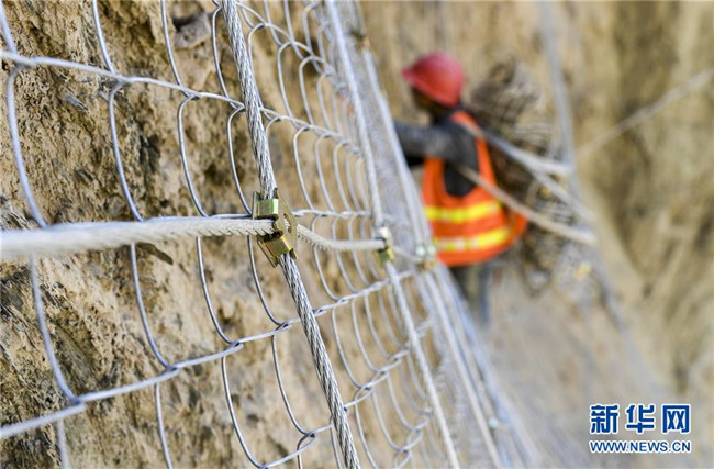 11月12日,在新疆塔什庫爾干塔吉克自治縣大同鄉(xiāng)鄉(xiāng)政府附近的一處路段,來自四川的吳飛在峭壁上安裝防護(hù)網(wǎng)。 近日,一支由四川、云南等地工人組成的施工隊忙碌在帕米爾高原深處的大山中,為塔什庫爾干塔吉克自治縣縣城至大同鄉(xiāng)道路的易落石路段安裝防護(hù)網(wǎng)。崇山峻嶺間,工人要攀爬至峭壁上施工作業(yè),如躍動在大山間的“舞者”。據(jù)介紹,這支施工隊常年活躍在新疆山區(qū)道路的施工現(xiàn)場,為風(fēng)險路段加裝安全防護(hù)裝置,保障過往車輛和沿途村民出行安全。 新華社記者 胡虎虎 攝