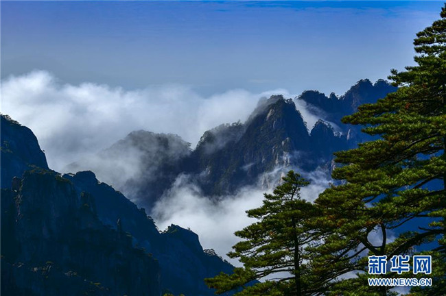 11月20日,安徽黃山風景區(qū)雨后放晴,流云在氣流的作用下從山峰之間傾瀉而下,形成壯美的“瀑布流云”景觀。 新華社發(fā)(水從澤 攝)